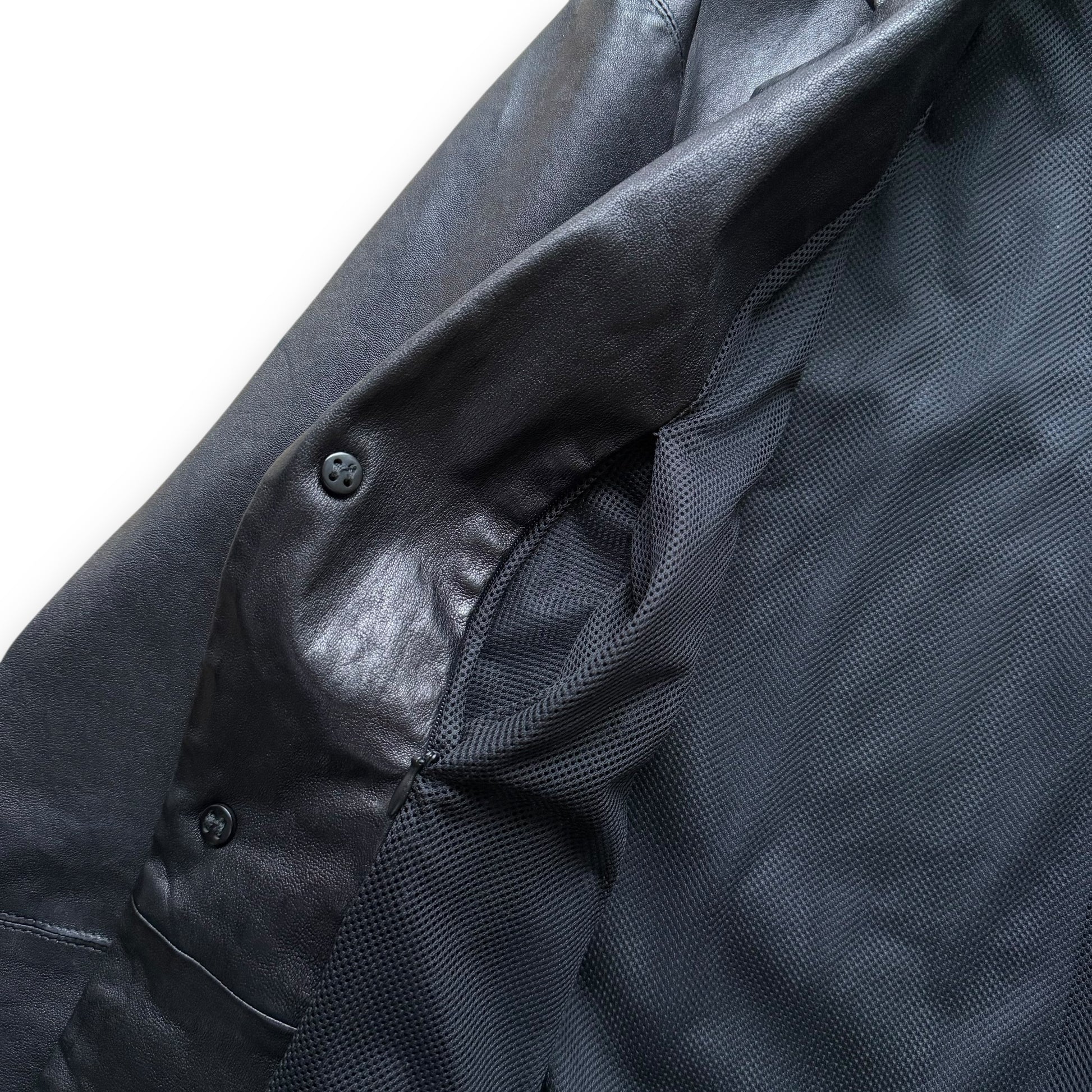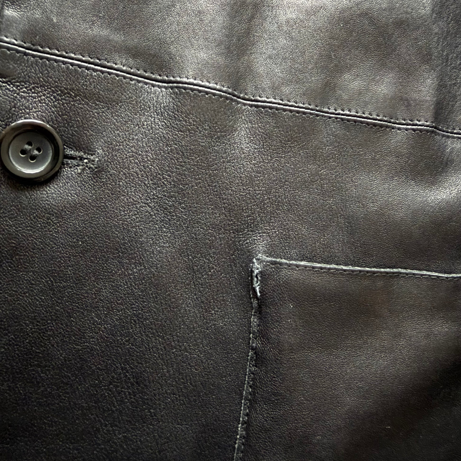 This rare piece from the early 2000s era was made under the the highly sought after ’Borgonuovo 21’ label, which typically produced pieces with an unparralleled cut and finish, optimal attention to detail and incredible materials. It features a leather construxtion with 2 sleek pockets, a 3-button closure and a concealed interior stash pocket.