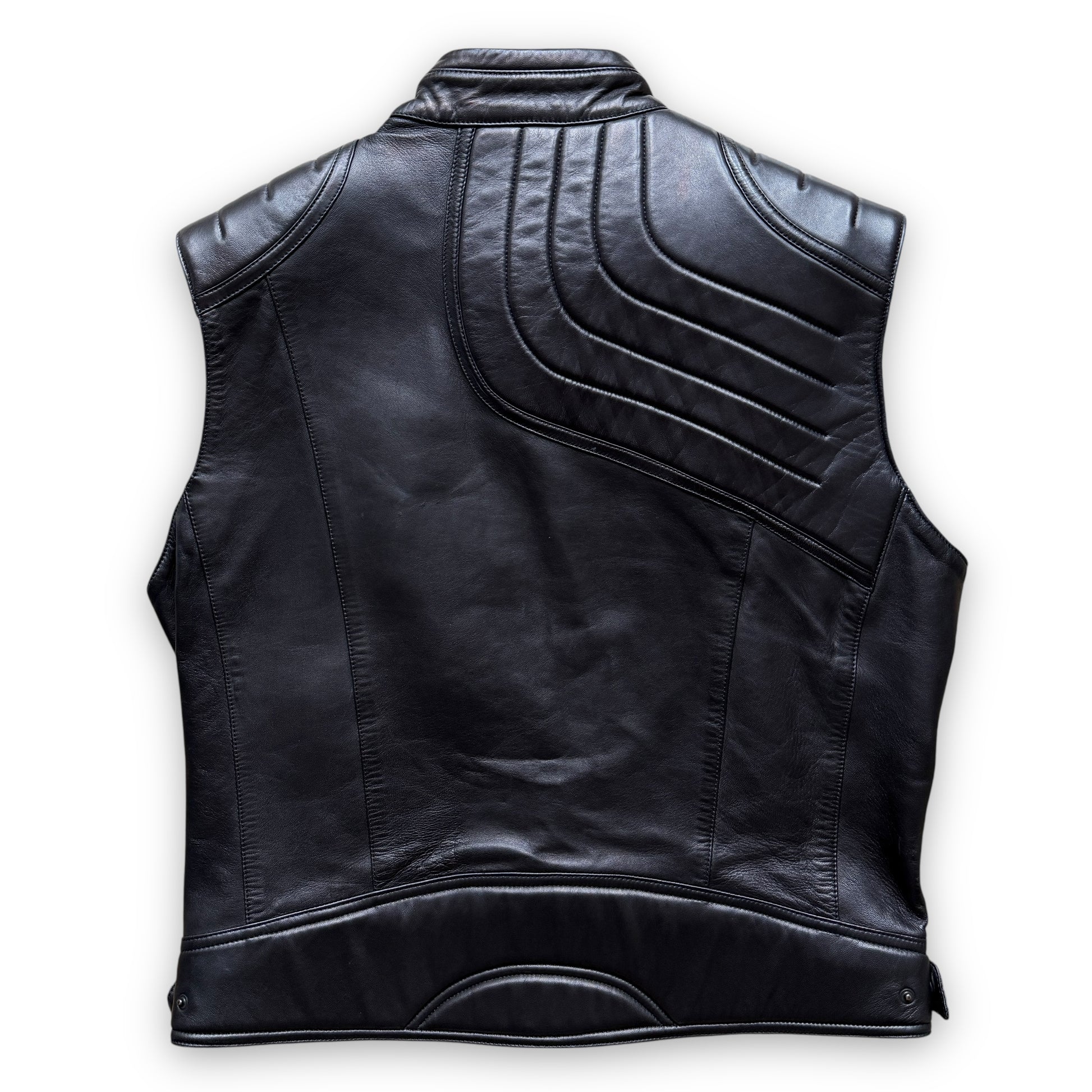 This particular piece from the F/W2000 season features a full black leather construction with moulded padding across the chest and shoulders and an adjustable waist. There are 2 outer pockets and a compartment on the interior.