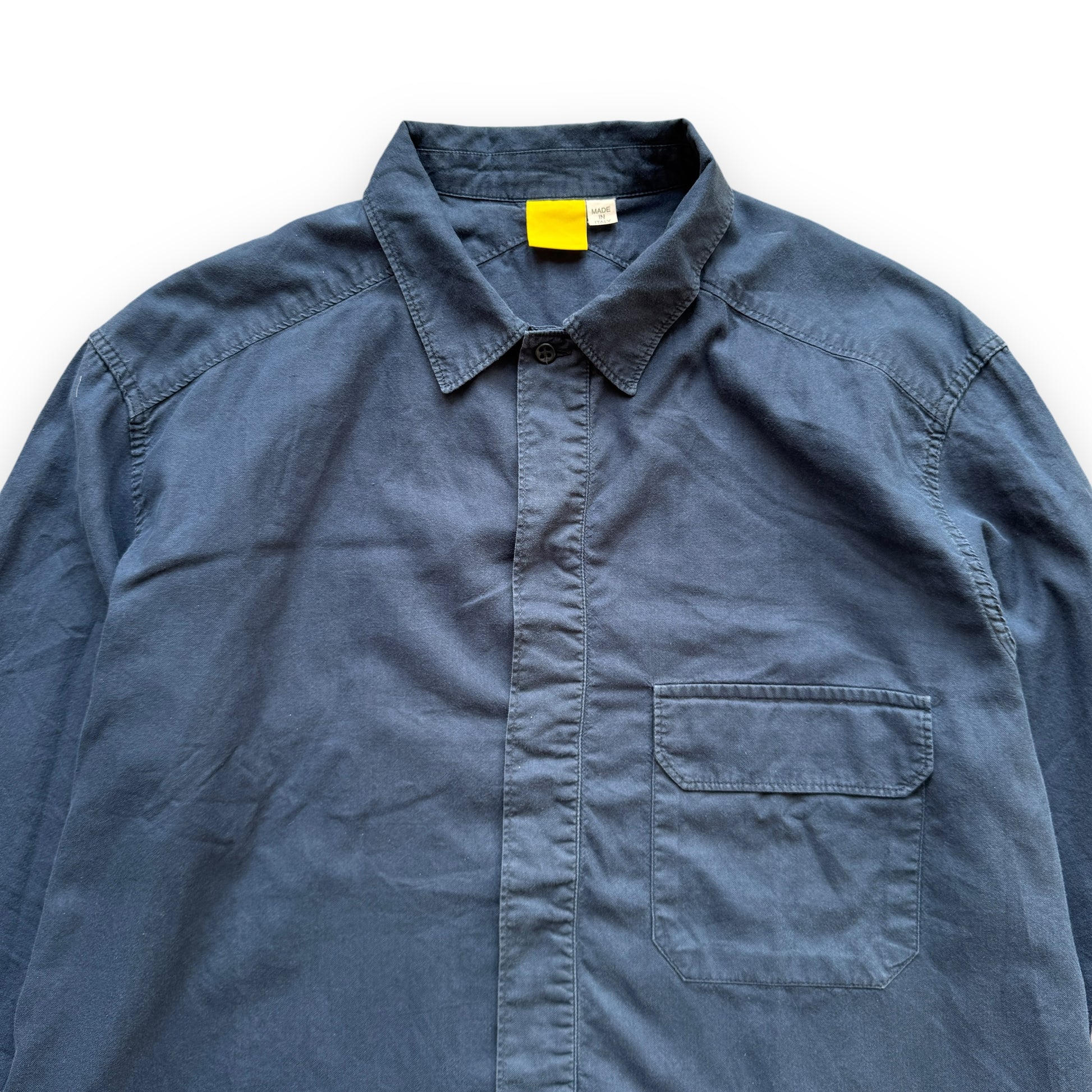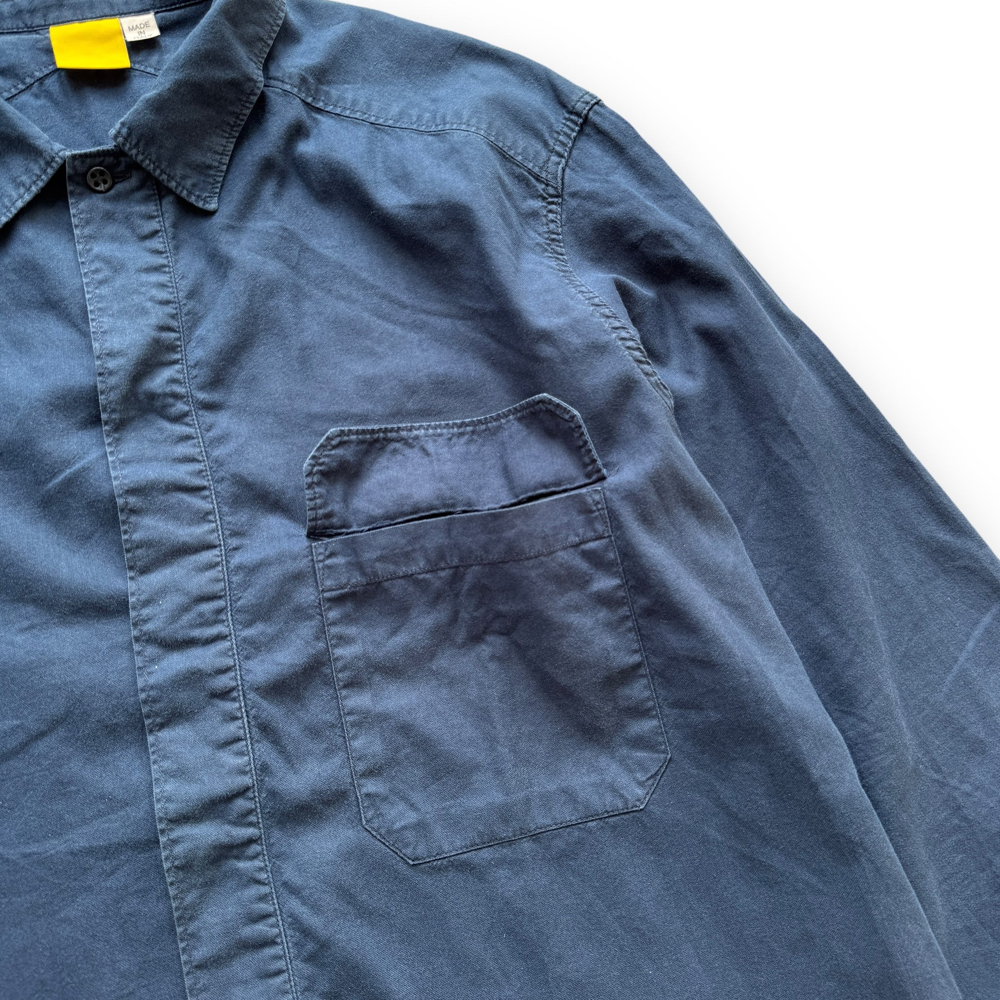 This piece is an early 2000s chest pocket shirt with a boxy cut.